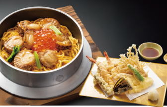 新しくオープンしたお食事処で名物釜めしと天ぷら料理の昼食。桜咲く竹田城址公園の景色もお楽しみください。3/28出発3/29出発