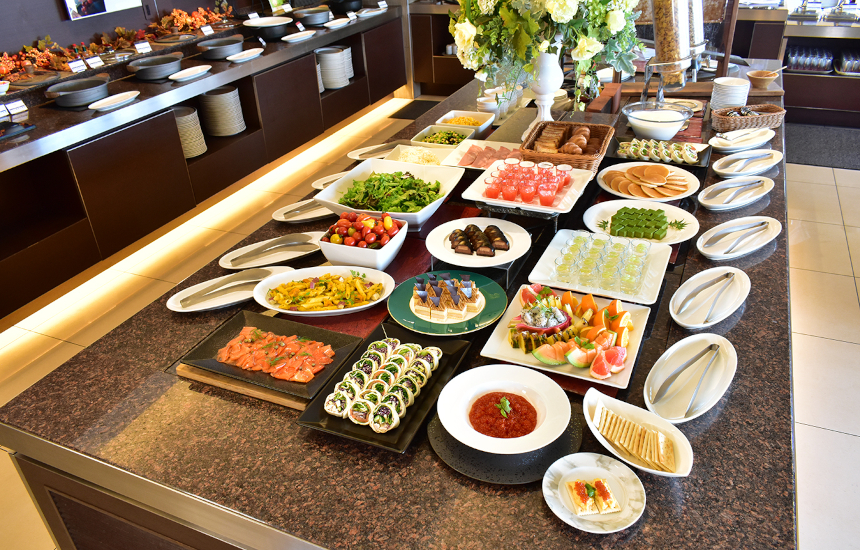 地上54Fの景色が楽しめるレストランでランチブッフェの昼食。パノラマの景色をお楽しみください。